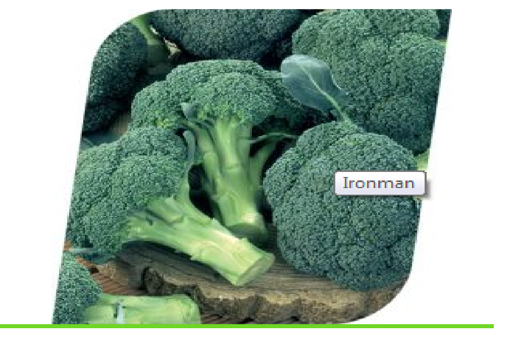 Ironman F1 je  hibrid koji se može uzgajati tokom cijele sezone. Biljke su snažne, a glavice podignute vrlo visoko, tako da skoro uopće nemaju lišće vezano za vrat glavice što ga čini izuzetno lakim za berbu. Ima odličnu toleranciju na stres i bakterioze. Glavice su krupnoće do 750 g, plavo-zelene boje sa manjim brojem bočnih zaperaka. Dužina vegetacije je 82 dana u proljeće, 64 u ljeto i 73 u jesen. Ima odličnu toleranciju na plamenjaču.