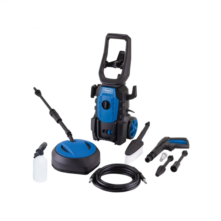 Sa svojim snažnim motorom od 1600 W i maksimalnim pritiskom od 135 bara, Scheppach električni perač visokim pritiskom HPC1600 komplet je idealan za čišćenje kuća, dvorišta i vrta. Zahvaljujući svom kompaktnom dizajnu i transportnoj ručki, čistač je jednostavan za transport i štedi prostor prilikom skladištenja. Scheppach HPC1600 komplet se automatski uključuje i isključuje, a njegovi točkovi ga čine idealnim za mobilnu upotrebu. Zahvaljujući velikom protoku od 420 L/h, prljave površine mogu se brzo očistiti.