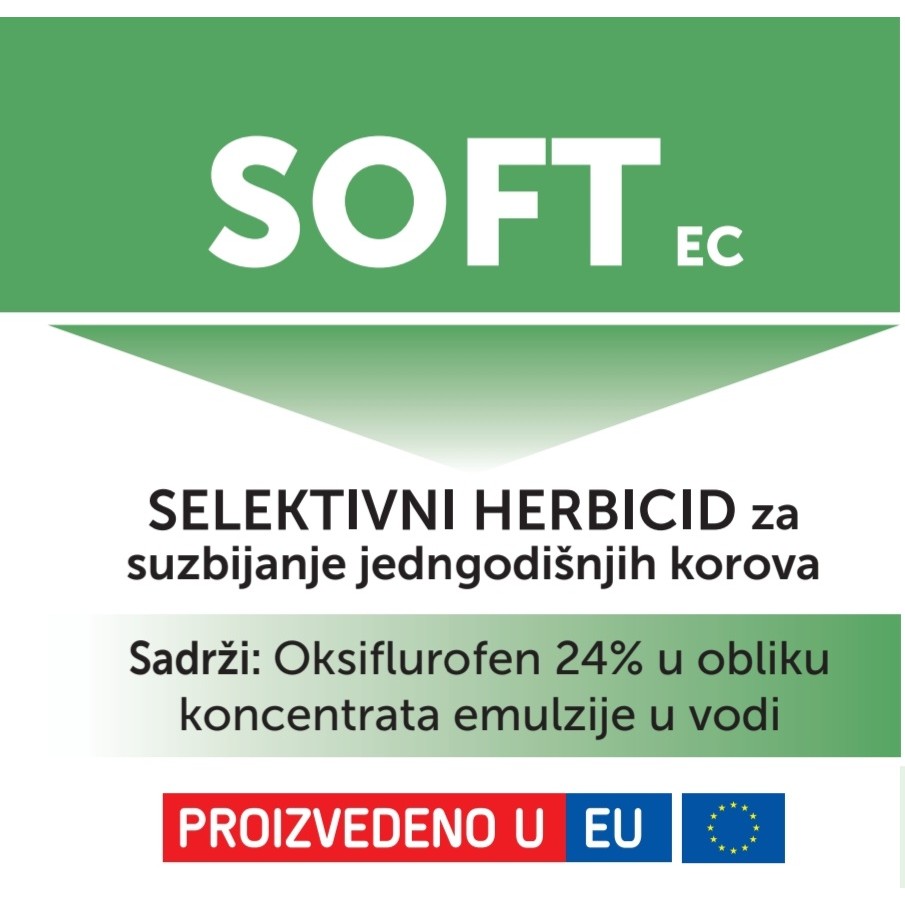 Soft je selektivni herbicid za suzbijanje jednogodišnjih i nekih višegodišnjih širokolisnih korova u usjevima suncokreta, luka, kupusa te jabuke, kruške i vinove loze.